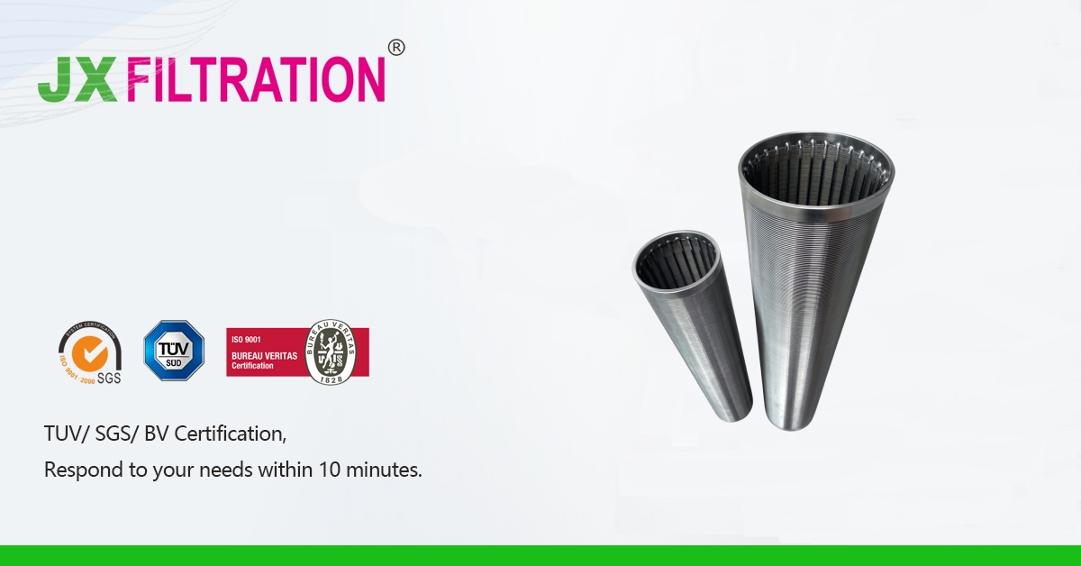- Burnt wire structure: It consists of longitudinally arranged support rods (usually stainless steel or high-strength alloy) and wedge-shaped metal wires wound on the support rods. The cross-section of the wedge-shaped wire is trapezoidal, and a continuous V-shaped gap is formed after winding. The gap width can be customized according to needs.